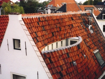 'Een dakterras ter hoogte van de vliering in een bestaand dakvlak van een gemeentelijk monument' luidde de opdracht. Van Monumentenzorg mocht het monumentale dakvlak slechts minimaal aangetast worden. Met gebruikmaking van de eigenschappen van het monumentale materiaal, een sporenkap en oud-Hollandse pannen bleek de oplossing het naar binnen buigen van het boven het gewenste terras liggende dakvlak en het naar buiten buigen van het onder het dakterras gelegen dakvlak. Door deze ingreep ontstaat een lensvormig terras dat via een trapje en een kajuitluik bereikt kan worden. Het dakterras kan worden gerealiseerd door vervorming van de bestaande dakvlakken zonder enige toevoeging. Vanaf de straat is voor de oplettende passant alleen deze vervorming zichtbaar terwijl de bewoners een zonovergoten dakterras bezitten met uitzicht over de stad.